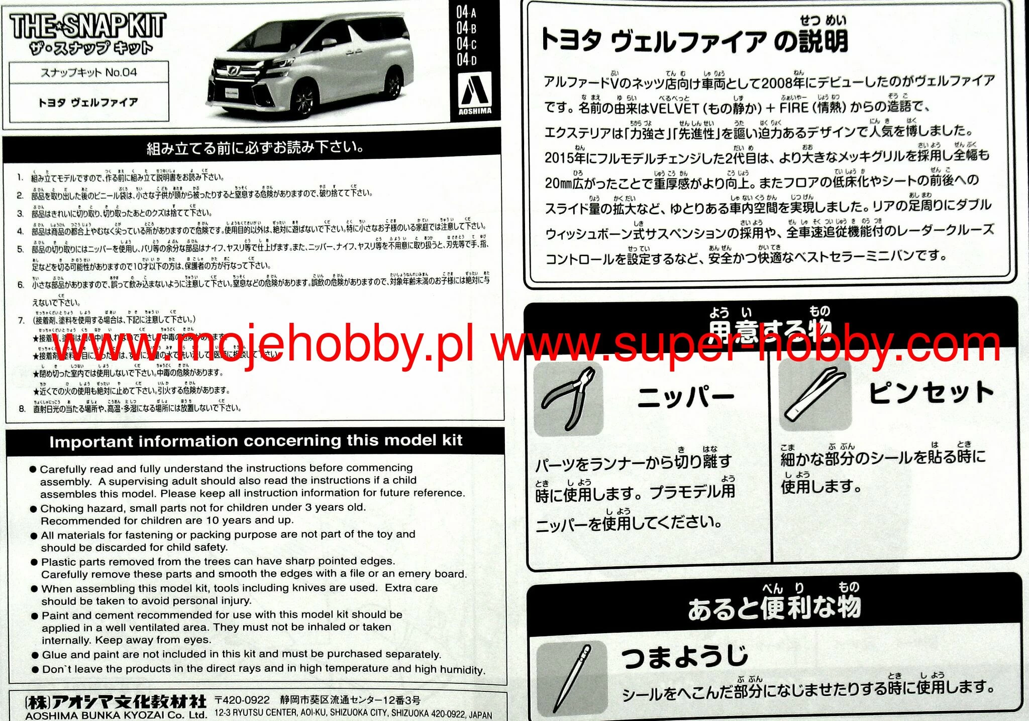 Be the first to review “Aoshima 05630 Toyota Vellfire (White Pearl Crystal Shine) – SNAP KIT” Cancel reply