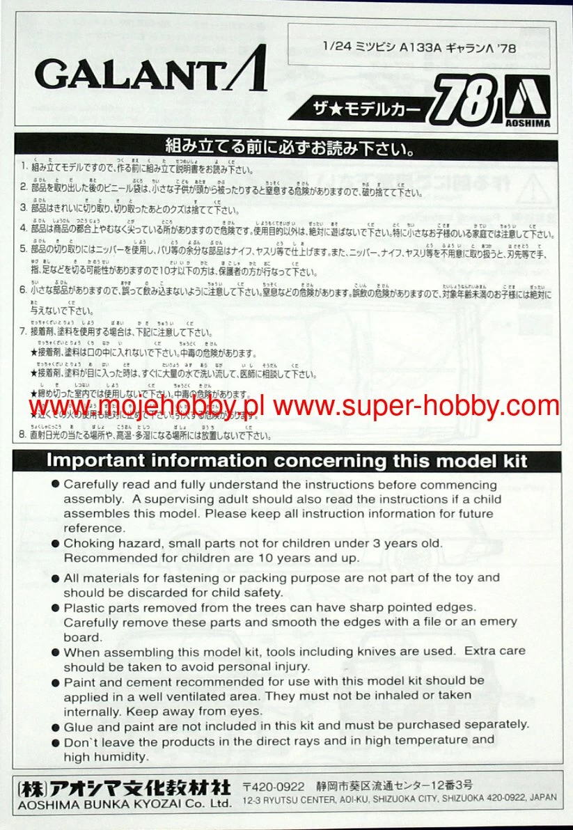Be the first to review “Aoshima 05849 Mitsubishi A133A Galant ’78” Cancel reply