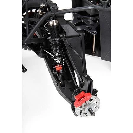 The long-travel shocks do a fantastic job of soaking up the energy from big bumps and jumps. They also feature threaded shock bodies with adjustment collars so you can fine tune the pre-load settings of the coil-over springs. External bump stops provide plush landings on the hardest surfaces.