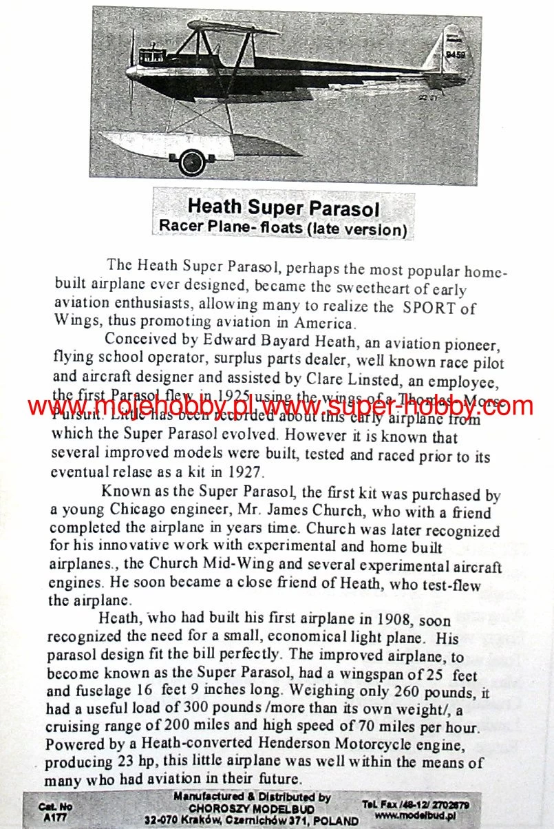 Be the first to review “Choroszy Modelbud A177 Heath Super Parasol Racer (floats)” Cancel reply