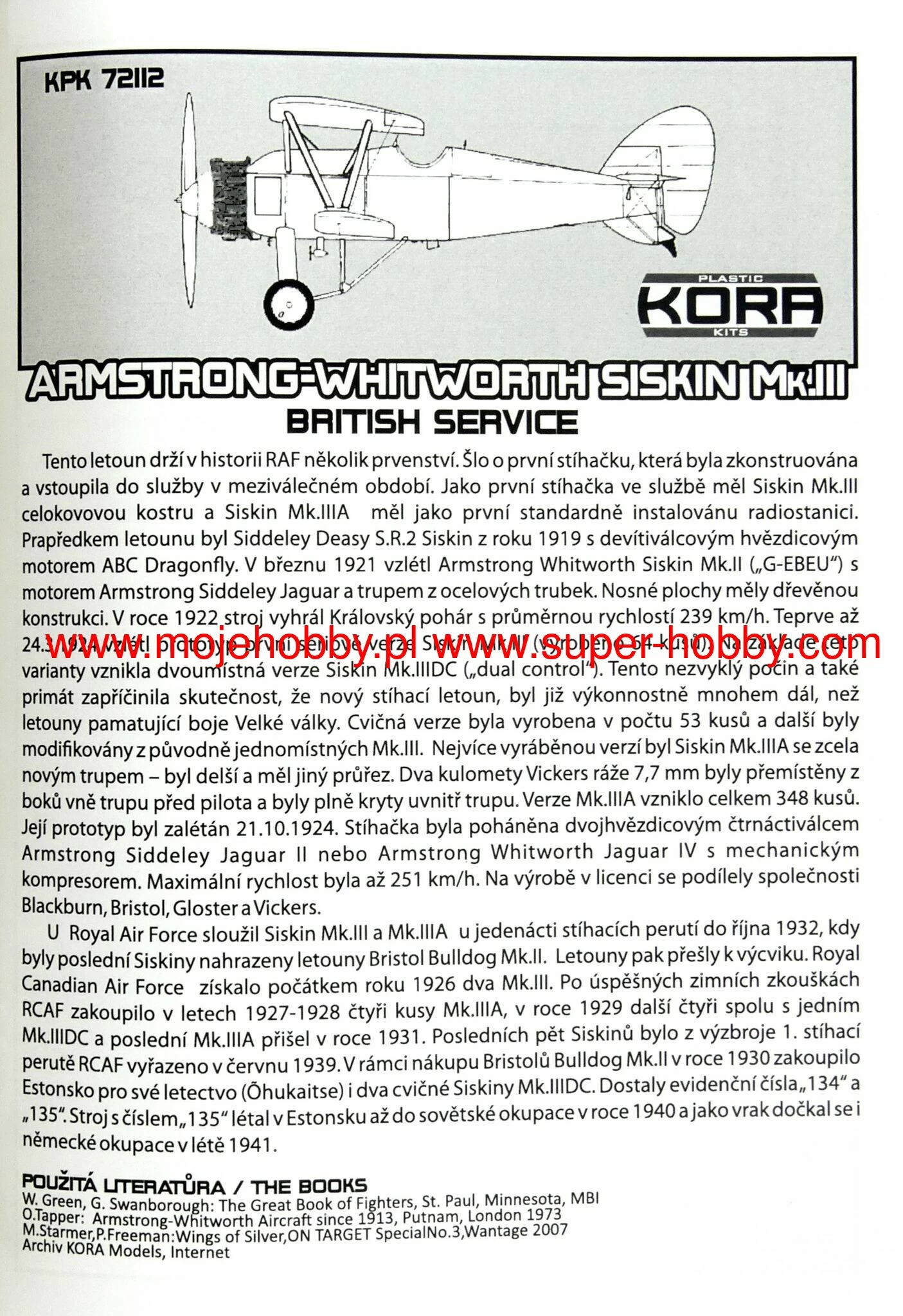 Be the first to review “Kora Models KPK72112 Armstrong And Withworth Siskin Mk.III” Cancel reply
