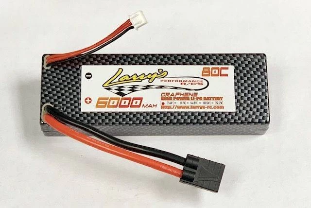 This is a Larry’s Performance RC 6000mAh 2s 80C Hardcase Graphene LiPo with TRX Connector
