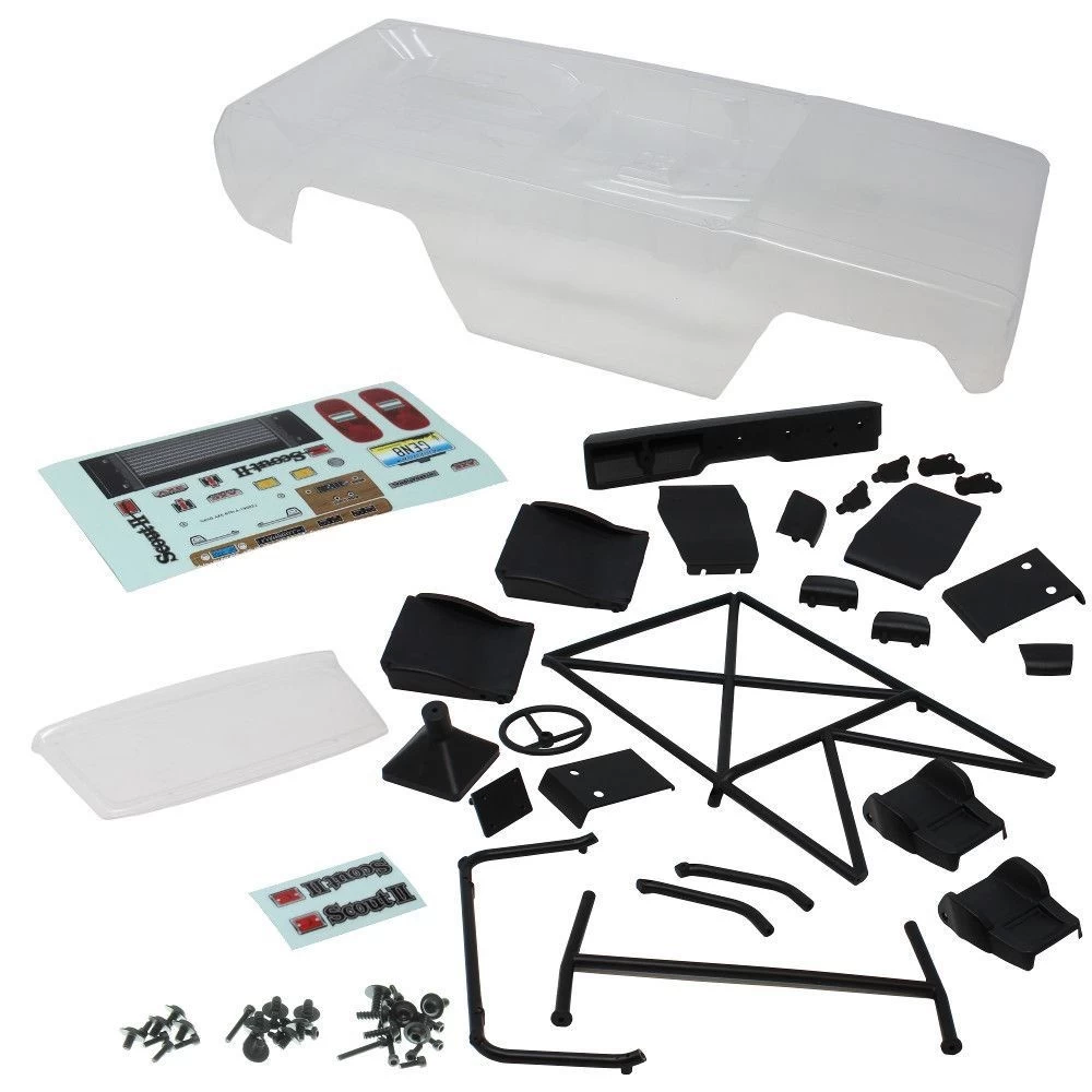 Gen8 AXE Clear Body (Pre-cut) – Includes Roll Cage, Seats, Dashboard, Steering wheel, Gear Shift, Spare Tire Mount.Does NOT include inner fenders, outer fenders, side view mirrors and some of the interior stickers. Please view pictures to see exactly what is included.