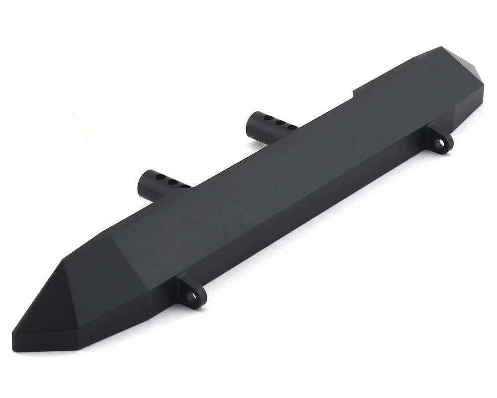 The SSD RC SCX10 III Rock Shield Rear Bumper, a CNC aluminum bumper for the SCX10 III chassis. This lightweight scale part is anodized black for a clean, stealthy appearance. Improve your vehicles clearance and approach with this dependable bumper with removable aluminum bumper mounts.