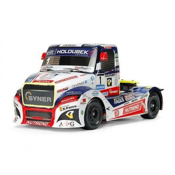 This model recreates the Buggyra Racing Fat Fox piloted in the 2018 season of the European truck racing circuit by 2017 champion Adam Lacko. The realistic body is a 3-piece set made from lightweight and durable polycarbonate, with separately molded plastic side mirrors, coupler and rear bumper parts. The TT-01 Type-E chassis is a proven performer, and this chassis is fitted with dedicated semi-truck wheels and tires for the model.