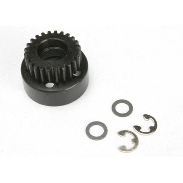 Clutch bell, (24-tooth)/ 5x8x0.5mm fiber washer (2)/ 5mm E-clip (requires TRA4611-ball bearings, 5x11x4mm (2))