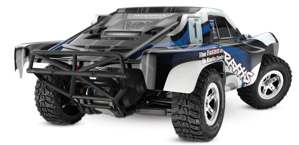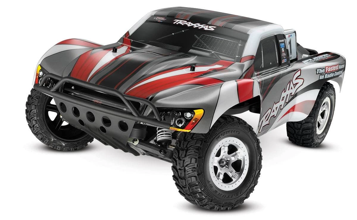 Slash is now LiPo-ready, with built-in Low-Voltage Detection! Award-Winning Short-Course Performance and Fun! The Traxxas Slash is equipped with the exclusive watertight, sealed Traxxas electronics that provides drivers with the freedom to drive where they want to drive. Through water, mud, snow, and other wet-running conditions that were never possible before. The Slash is brushless ready with a waterproof digital steering servo, full ball bearings, metal gear transmission, Torque-Control slipper, planetary gear differential, and high-quality metal turnbuckles. The Traxxas Slash is fully assembled and Ready-To-Race for immediate out-of-the-box racing fun!