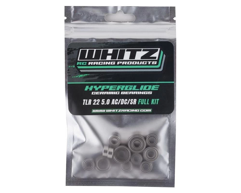 Whitz Racing Products Hyperglide 22 5.0 Elite Wheel Ceramic Bearing Kit, high performance ceramic and stainless steel bearings for the TLR 22 5.0 AC, TLR 22 5.0 DCm and TLR 22 5.0 SR kits. This full kit includes all bearings except steering bearings, and makes for an ideal choice for upgrading your vehicle, or replacements for maintenance.