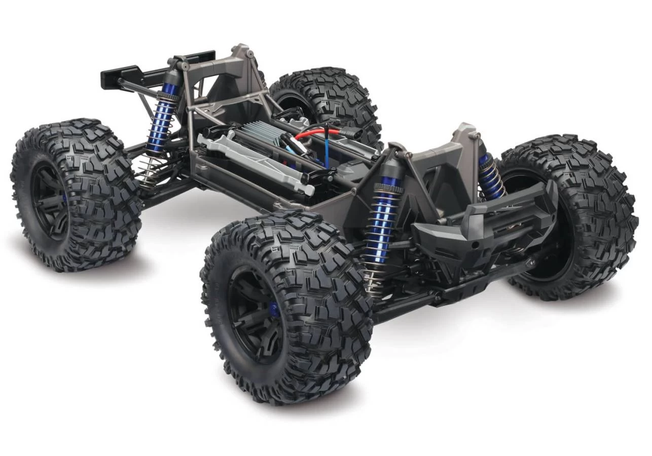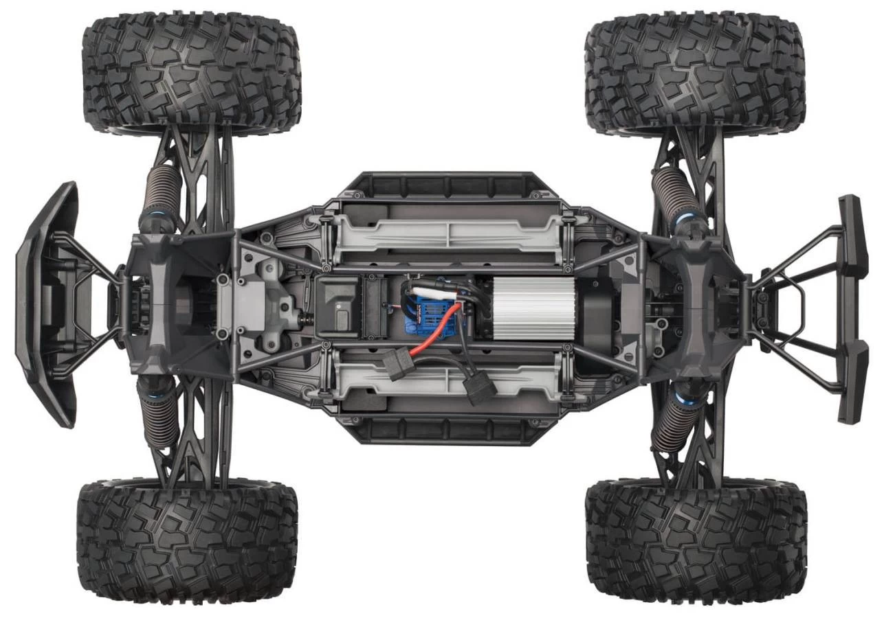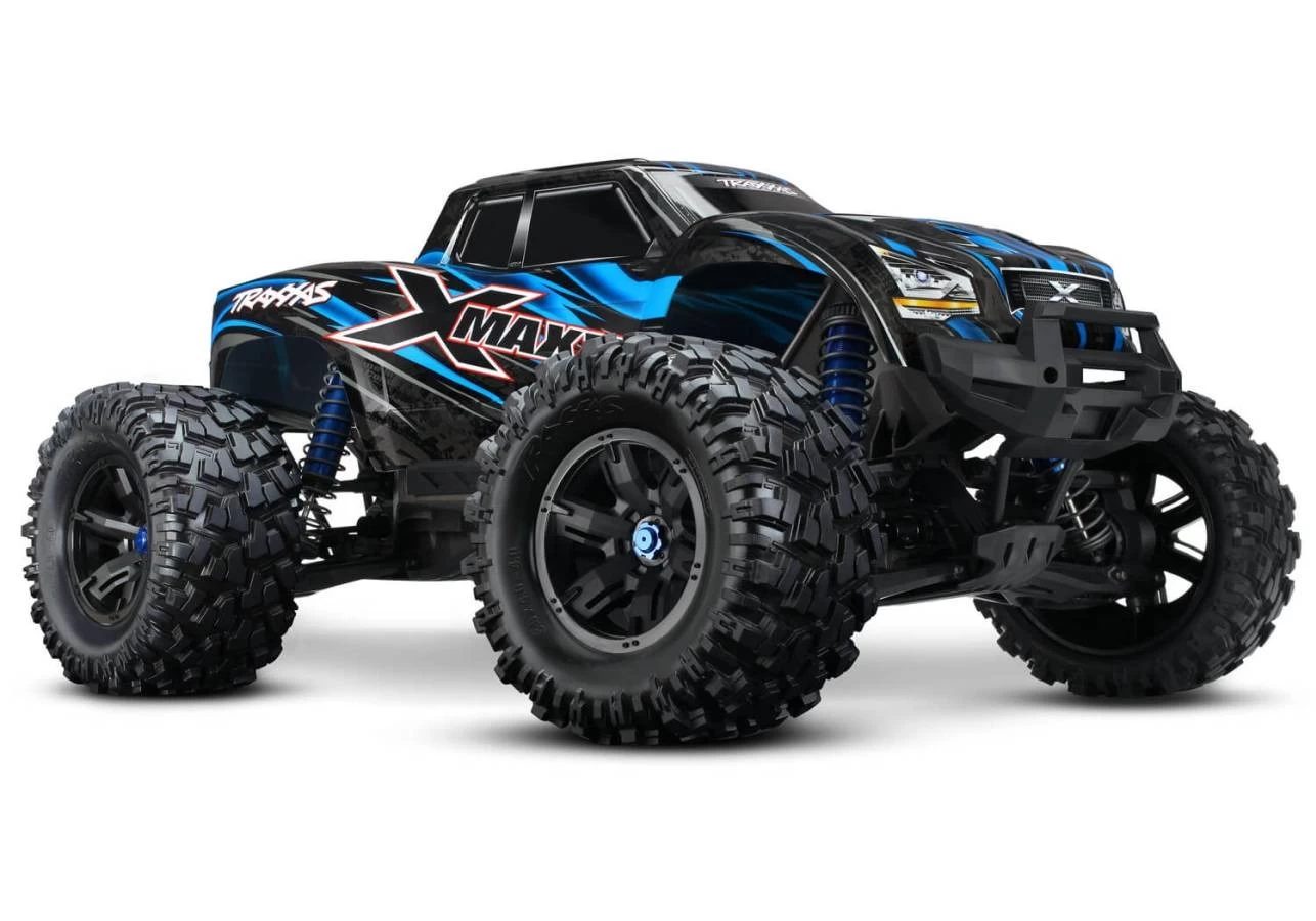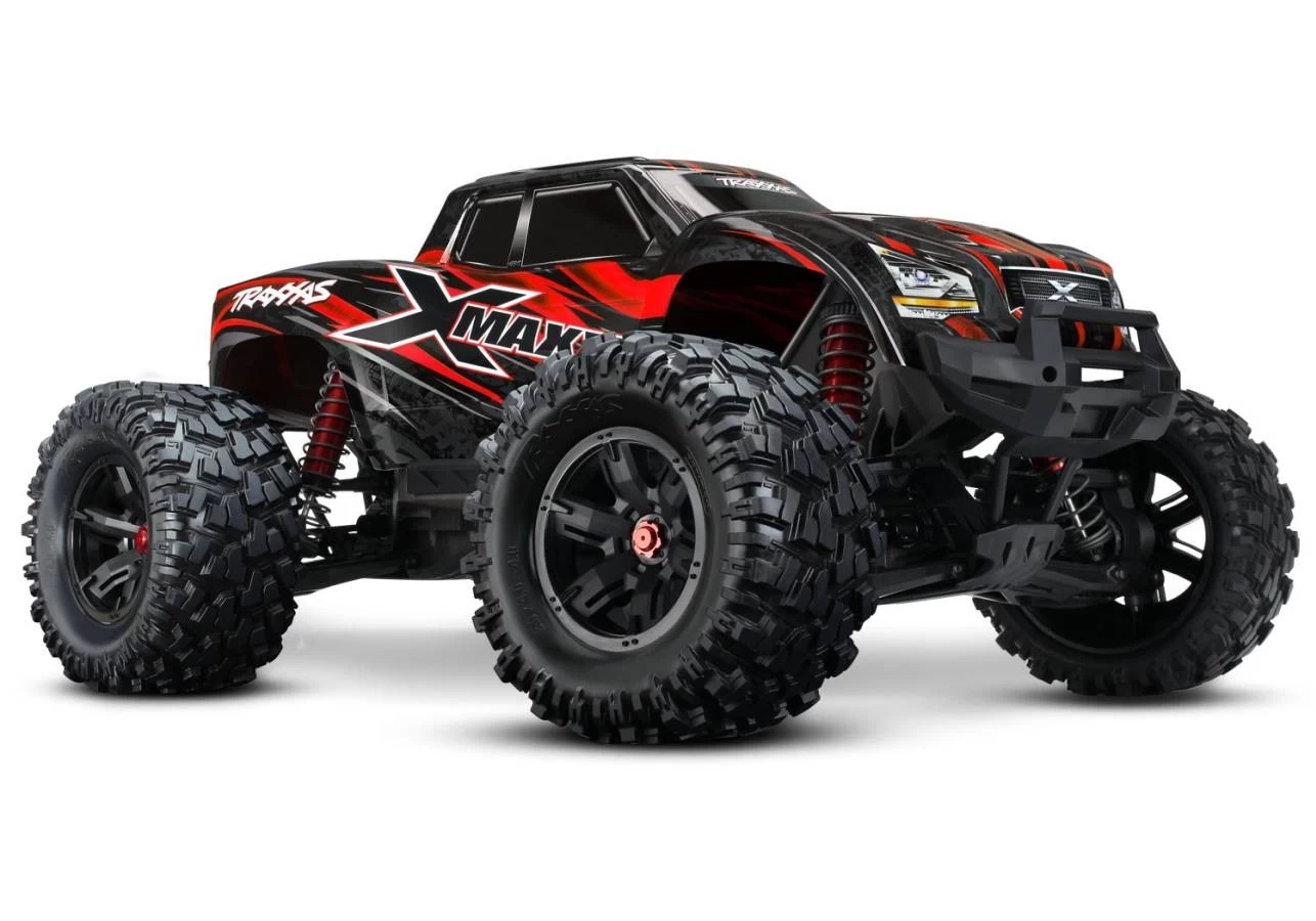 X-Maxx is enormous. At almost 30-inches long, just over 21-inches wide, and 14-inches tall, X-Maxx is the biggest monster truck to come from Traxxas. Power over and through extreme terrain with incredible ease. Size wins by giving you the advantage to power over and through extreme landscapes. Mammoth 8-inch tall tires, long-arm suspension, and huge ground clearance dwarf the surroundings for virtually unstoppable Monster truck fun. Traxxas engineers tossed out old conventions and reimagined every aspect X-Maxx to make it the world’s toughest, hardest charging, Ready-To-Drive® monster. It lives to play, built for minimal maintenance and maximum drive time. Wildly over-powered, X-Maxx stays true to form with its Maxx® DNA. Power equals fun, and Traxxas builds in more of both than anyone. Massive Big Block™ brushless power and 6s LiPo muscle propel X-Maxx with a brutal authority and exacting quickness that completely defies its enormous size. Before X-Maxx, monster trucks would sometimes roll over upside down, bringing the action to a screeching halt. Now, press a button and in most cases this exclusive patent-pending Traxxas innovation flips X-Maxx back over onto its wheels so that you can quickly get back to having fun. X-Maxx shock towers introduce an exclusive new Traxxas look that offers rigid, triangulated structure and an authentic off-road look that fills in the wheel openings of the truck. They also serve as convenient carry handles and provide level supports for the X-Maxx when placed upside down for cleaning. X-Maxx’s long-travel, super-plush feel is assured with four enormous high-performance oil-filled GTX™ aluminum shocks. The large oil volume dissipates heat for all-day shredding, while an integrated wiper seal keeps the shafts clean and reduces seal wear for long life. |